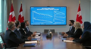 ABŞ-la ticarət siyasətində qeyri-müəyyənlik, xüsusilə avtomobil, polad, alüminium və ağac sənayelərinə təsir göstərir. BMO-nun baş iqtisadçısı Shelly Kaushik bildirir ki, tariflər bu sahələrdə işçi itkilərinə səbəb olub və bu qeyri-müəyyənlik bütün iqtisadiyyata təsir edir.