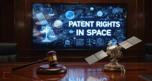 Kosmosla bağlı hüquqi çərçivələrdə əsasən 1967-ci il Xarici Kosmos Müqaviləsi və Qeydiyyat Konvensiyası önəmli rol oynayır. Bu müqavilələrə görə, kosmosa göndərilən obyektlər göndərən dövlətin nəzarətində və yurisdiksiyasında qalır. ABŞ bu qanunları genişləndirərək kosmosda patent hüquqlarını qorumaq üçün xüsusi qanunlar qəbul edib. Lakin digər ölkələrdə bu sahədə qanunvericilik hələ də qeyri-müəyyəndir.